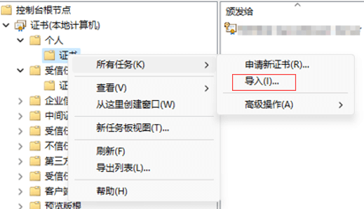 - 导入成功后会有三个证书,包含了服务器证书、中间证书、根证书。