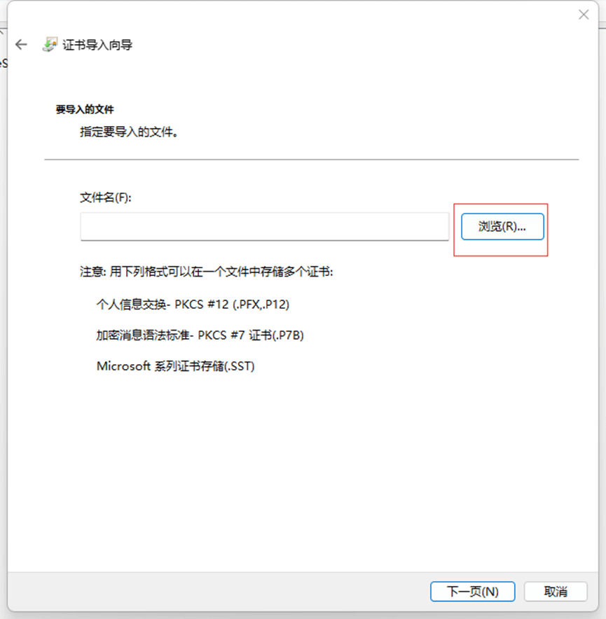 - 找到桌面上刚刚上传的pfx文件证书,点击确定,然后输入password.txt文件中的密码。